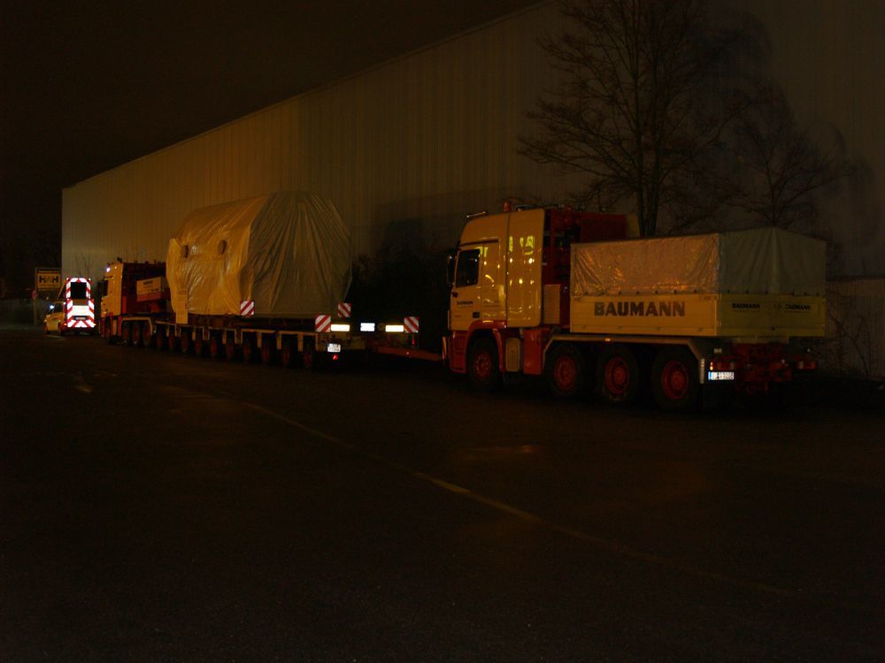 Beim Ziehen hat es noch einen riesen Travel gegeben,von unserer Hubwinde ist beim Lagenwechsel die Bordscheibe weggebrochen und das Hubseil ist um die scharfe Gusskante gebogen und ein paar Litzen waren schon durch. Gewicht muß um die 160 to am Haken gewesen sein. Es fehlten nur noch ein paar Zentimeter um die unteren Bolzen zum Fahrwerk einzubringen. Es hat einen riesen Knall gegeben,wir dachten zuerst eine von den Schwellen die als Kanntenschutz da waren währe gebrochen. Dann sahen wir die Bescherung. Da standen alle auf der Matte,von der firma Zoller(Windenbau) bis zum Chefkonstruktoer Becker von der firma Liebherr.