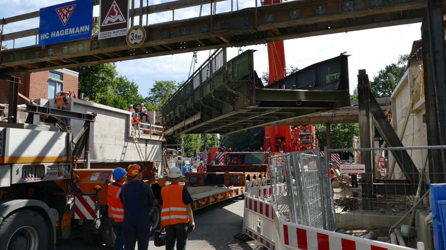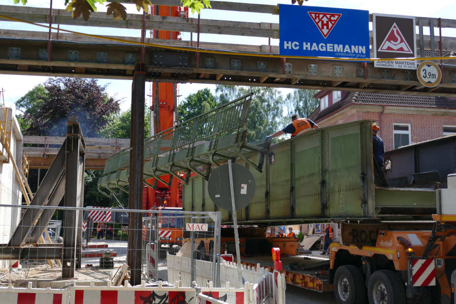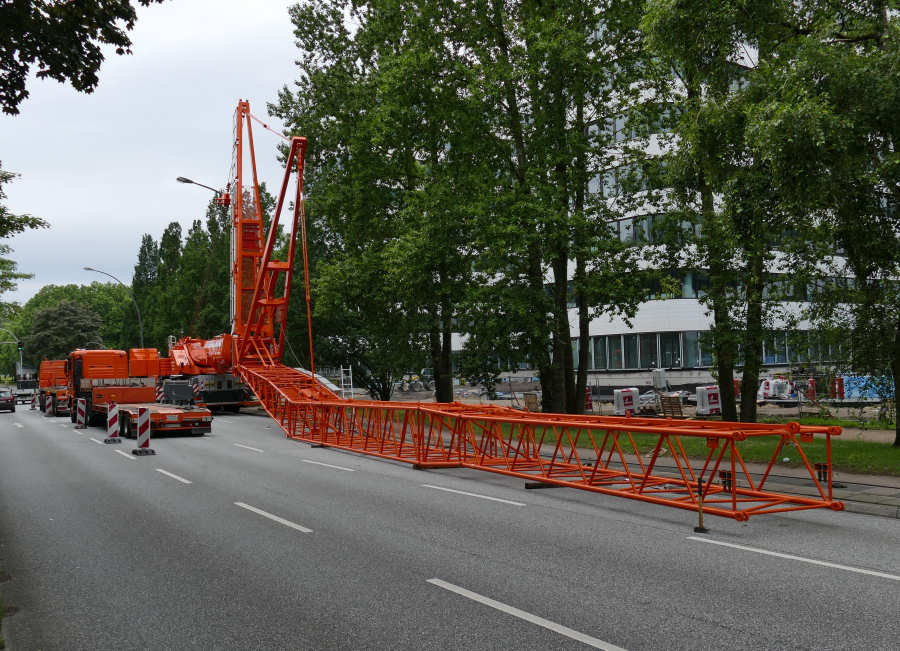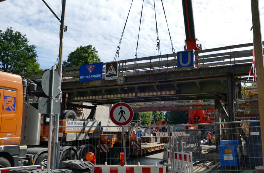 da warst Du am Samstag wohl ziemlich früh auf? Aber echt interessante Eisenbahnbaustelle wieder! Zwischen Brücke und Kran passte da noch eine Zeitung oder eher nur eine Briefmarke? In jedem Fall wohl gut gemessen. Der Brückentransport von Thömen ist das ein gewöhnlicher Actros 3348 womit sie das ziehen?