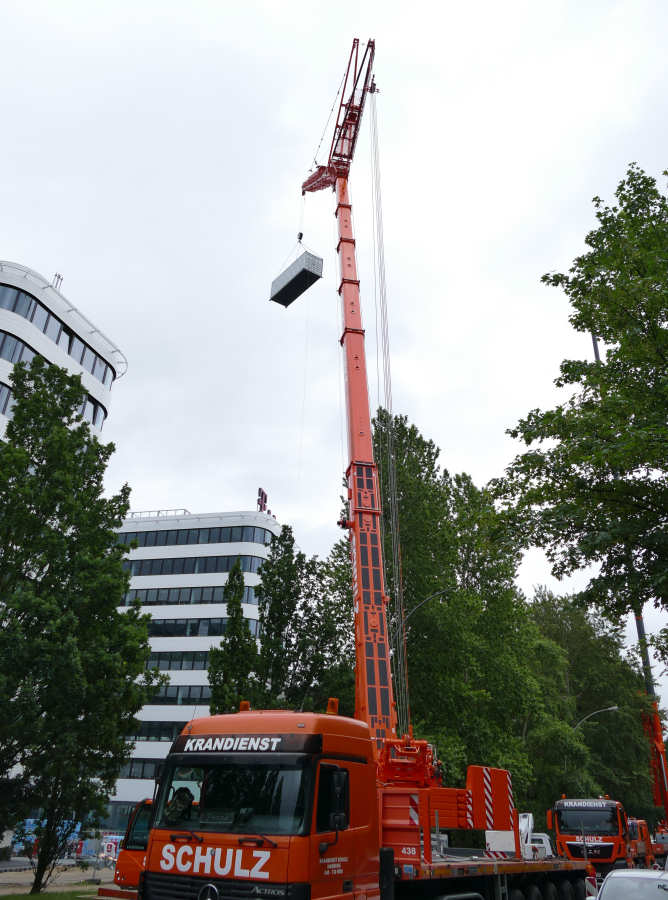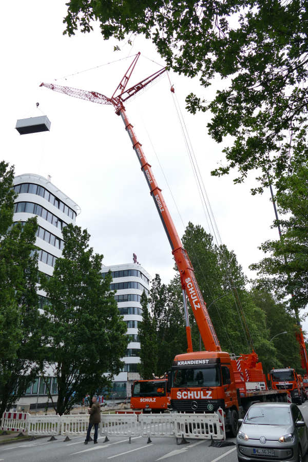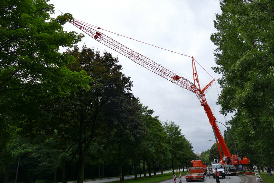 Da war schon genug Platz, nur das Platz machen für den Kran und das genaue aufstellen dauerte seine Zeit, er stand mit der UW Kabine unter der Kabelbrücke.