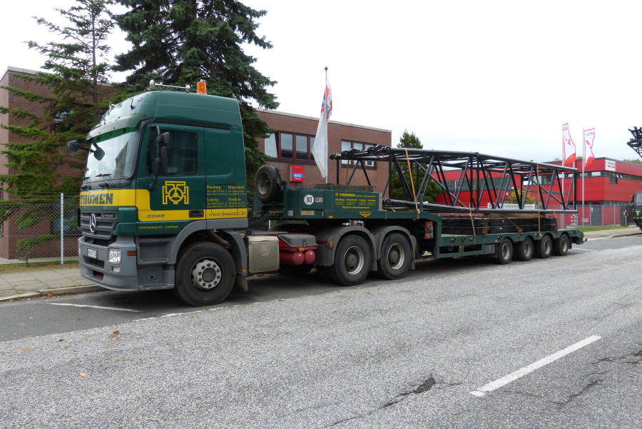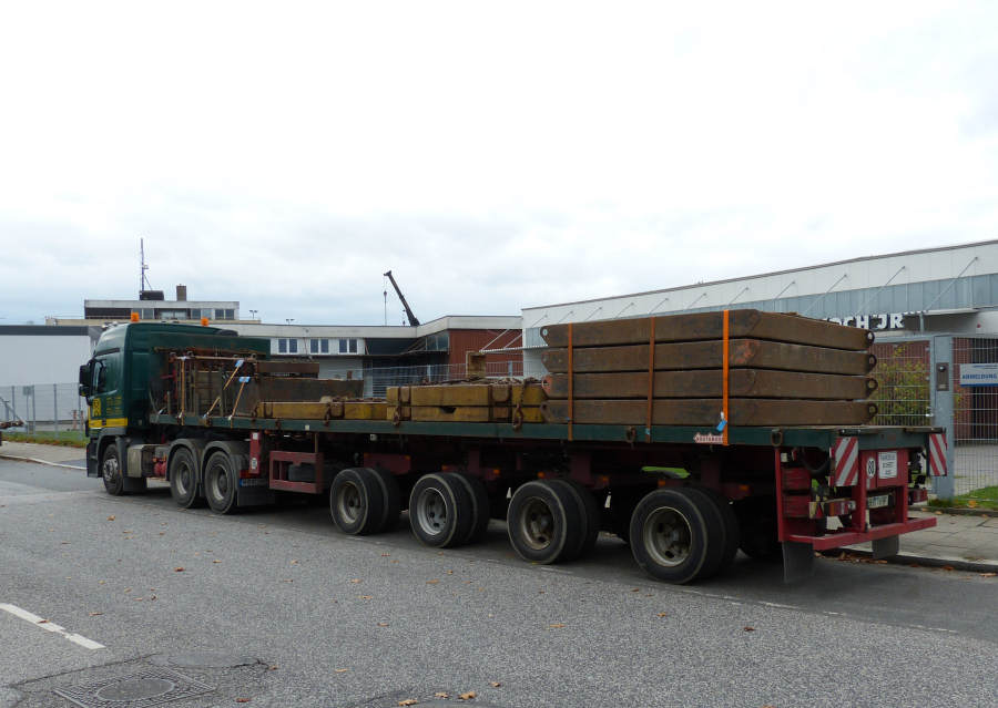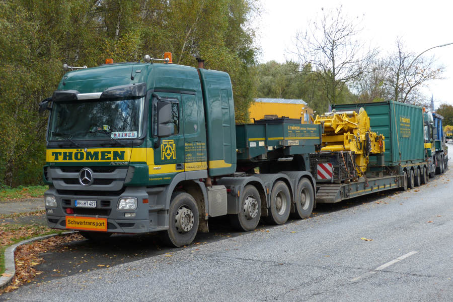 MB 3348 6x4 MP 3 mit Nooteboom dreiachs Semi und Spitze vom 500er aus Hamburg