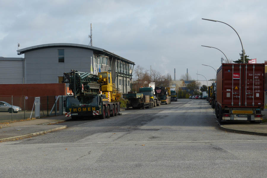 Letzte Woche wurde ein Wolffkran demontiert, diverse Transporte standen am Stenzelring.