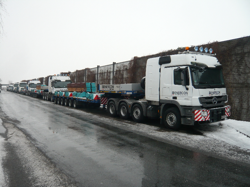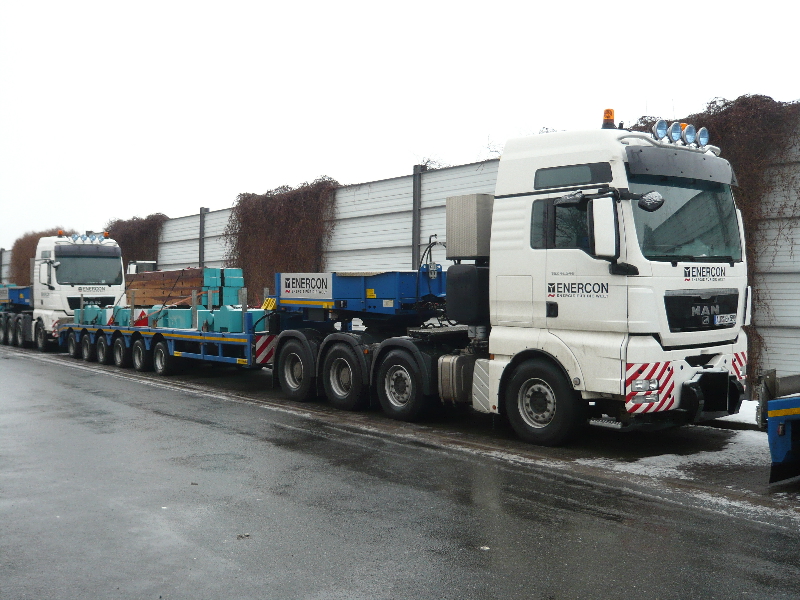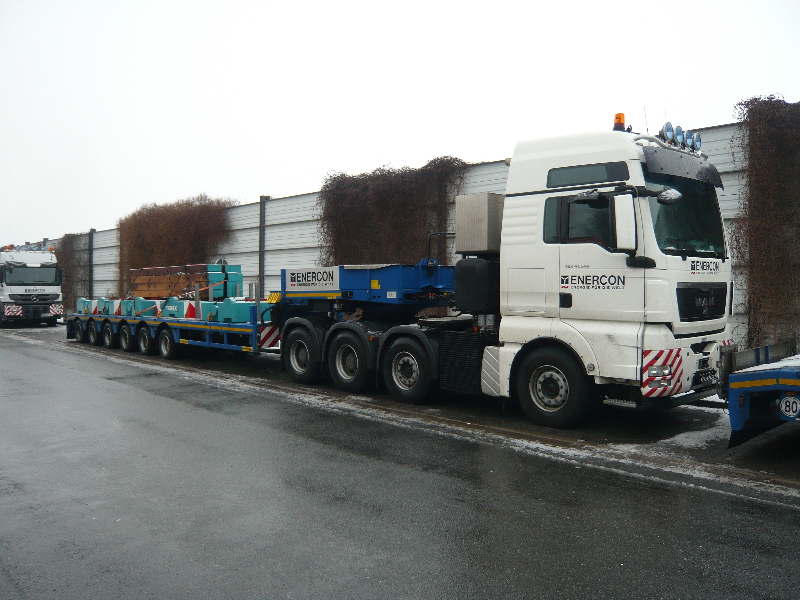 Hat Enercon eigentlich zwei Masttransporter? Prinzipiell würde einer ja ausreichen, der dann zwischen beiden LTR´s hin und her pendelt...
