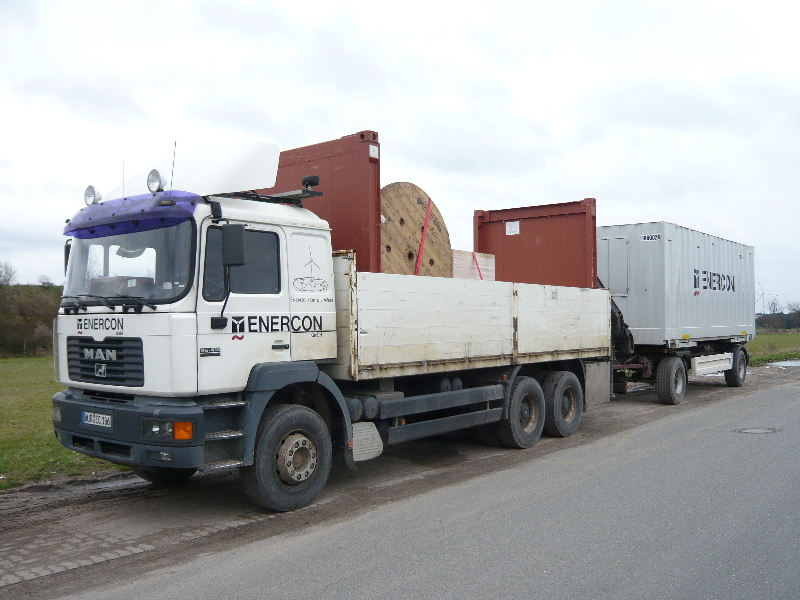 in Osterfeld bei Zeitz (LSA) stehen 2 Enercon-Transporter, die haben Kranteile geladen und sollen dort WKAs aufbauen....