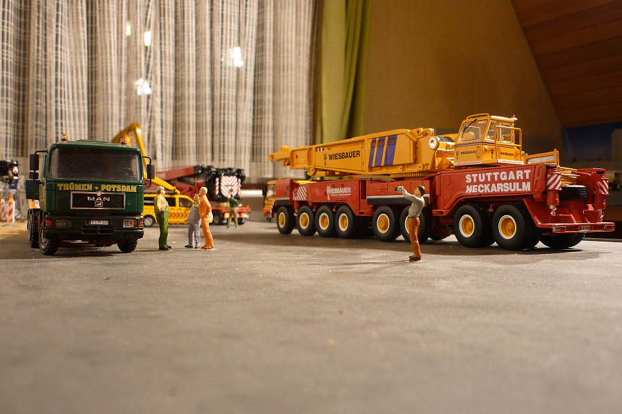 Neue Dinge werfen ihre Schatten voraus, der 50er von Thömen wurde abgerüstet und ein Zug der Potsdamer Niederlassung, mit Großkranzubehör, ist am Krischan Momsen Ufer eingetroffen. Schnell halten die Wiesbauer Leute noch einen Klönschnack mit dem Ankömmling ab.
