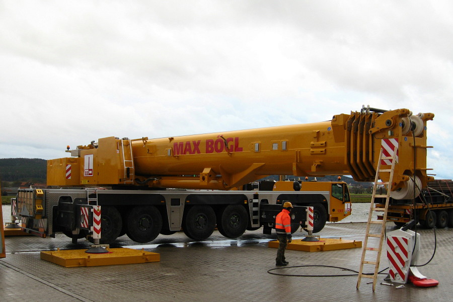 Der TDK hat, so schätze ich anhand der Bilder, eine Hakenhöhe von um die 80m und die hier genannte Typenbezeichnung deutet auf 70t Hublast hin. Jetzt schau mal in das Datenblatt vom AC350/6, was der bei 80m Hakenhöhe noch hebt...