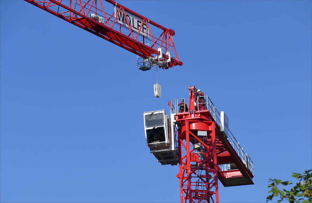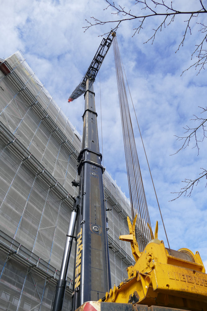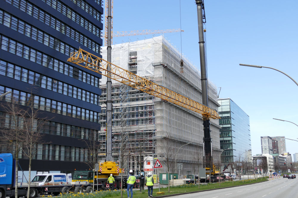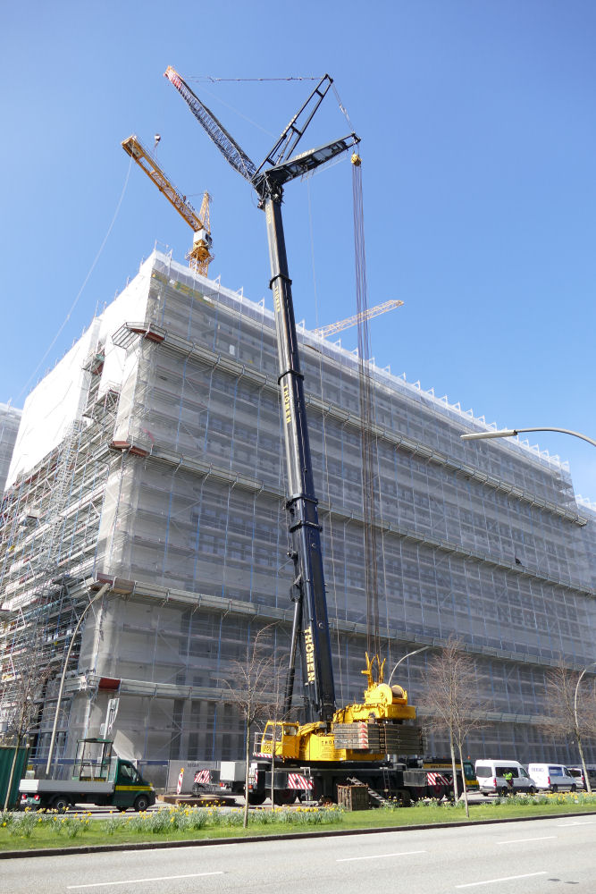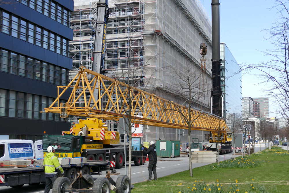 Dieses Wochenende wurde an der Olympus Campus Baustelle, am Heidenkampsweg in HH Hammerbrook, der Liebherr 280 EC H von Zech demontiert.