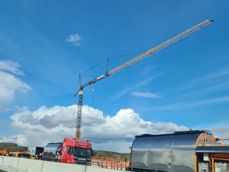 Tja. Es ist eben "mal so, mal so". An einigen Stellen wird "von hinten" gebaut, und zwar da, wo das Gelände es erlaubt, einen schweren Kran zu positionieren. Wo es nicht möglich ist, wird eben von der Autobahnseite gebaut und die rechte Spur gesperrt: