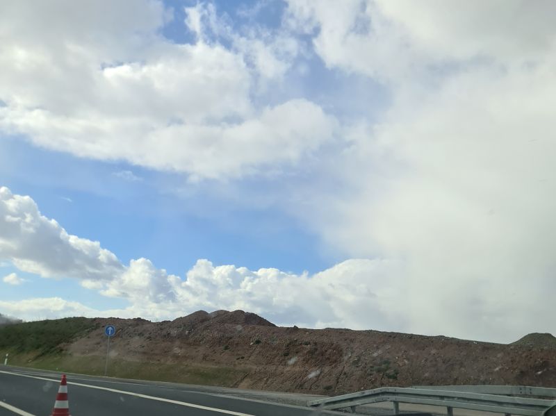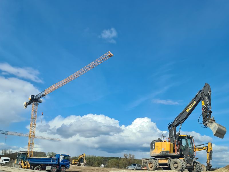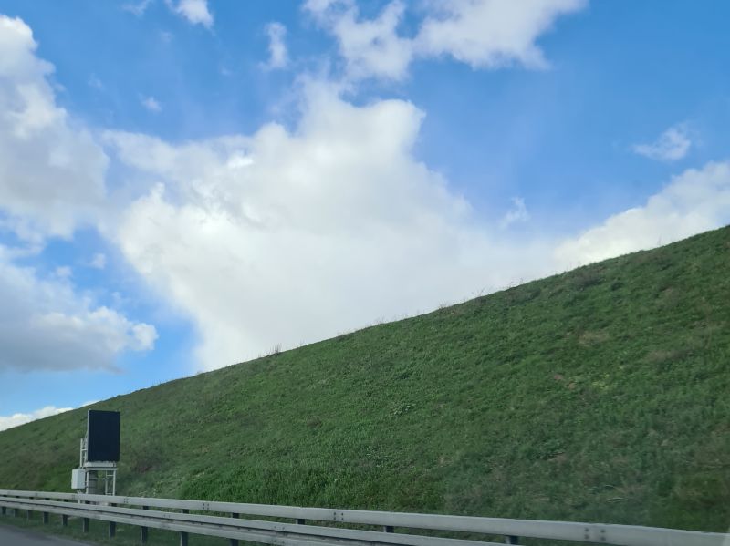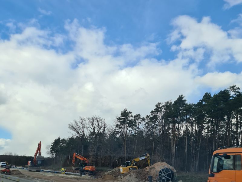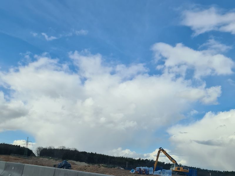 Im Übrigen gibt es einige Stellen, wo an der Böschung (Abrundung, Begrünung) gearbeitet werden muss, auf der ganzen Strecke der Großbaustelle.