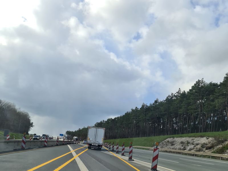 Weiter in Richtung WÜ wird die rechte Spur dicht gemacht: