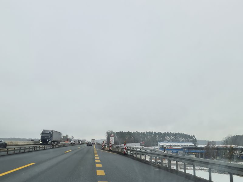 Also, kurz nach dem AK Biebelried steht auf dem Schild, das die Baustelle ankündigt, die ja keine Baustelle in dem Sinne mehr ist, weil man ja freie Fahrt hat - jedenfalls wurde das Fertigstellungsdatum für den sechsstreifigen Ausbau auf Juni 2026 geändert. Meines Erachtens ist es durchaus realistisch, es sind ja nur die paar Brücken rund um den Aischgrund und den PWC Dreifrankenstein Nord... Dieser wiederum ist kein Hindernis für die freie Fahrt, es wird halt neben der Autobahn weiter dran gebaut...