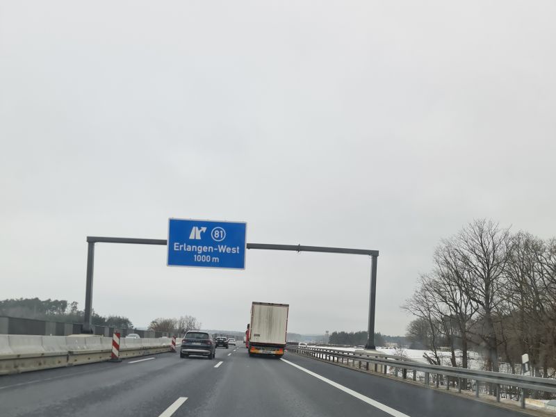 Vor genau einer Woche, am 05.02., musste ich wieder nach Vestenbergsreuth, hatte aber eine Zuladung für Nürnberg. So konnte ich doch fast die ganze Strecke zwischen Biebelried und Fürth/Erlangen fahren. "Fast die ganze Strecke" deswegen, weil ich von Vestenbergsreuth natürlich nicht zurück zur AS Schlüsselfeld fuhr, sondern ein paar km Landstraße bis Höchstadt a.d.A (AS Höchstadt Ost). Aber, wie wir wissen, in FR Nürnberg gebaut wird nur noch ab Höchstadt. Die Strecke davor ist mittlerweile ein reines Vergnügen für Vielfahrer und ansonsten häufig staugeplagte wie mich.