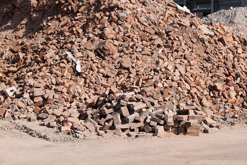 An dem Schuttberg der Hefefabrik werden aktuell in Handarbeit einzelne Ziegelsteine heraussortiert, gesäubert und ordentlich auf Paletten gesetzt und verpackt. Anscheinend sollen die als Baustoff wiederverwendet werden...