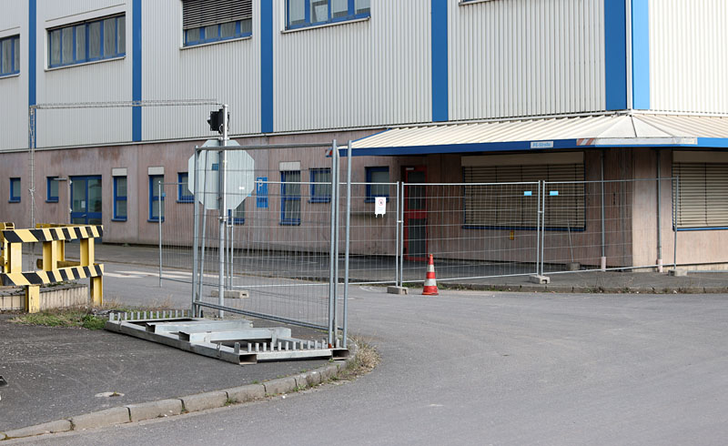 Außerdem ist inzwischen die sogenannte "PE-Straße", die werksinterne Straße zwischen den Hallen der Papiermaschine 2 und der Streichmaschine durch einen Bauzaun abgesperrt. Anscheinend laufen in diesem Bereich gerade Demontage- oder Abbrucharbeiten. Allerdings kann man leider von außen nicht in die Straße hineinschauen, weil just in diesem Bereich der Werkszaun in einen Lärmschutzwall übergeht.
