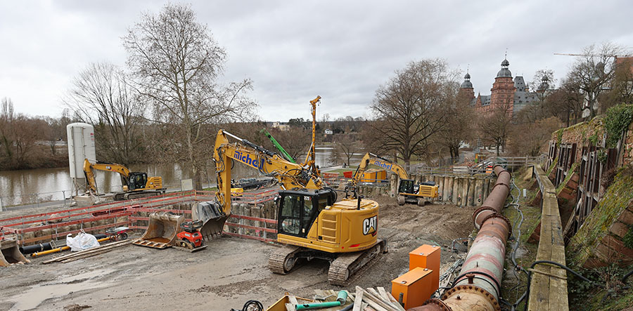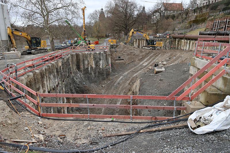Im mainseitigen Teil der Baugrube sieht es so aus, als habe man eine Sauberkeitsschicht angelegt - aber ich keine Ahnung, wofür...