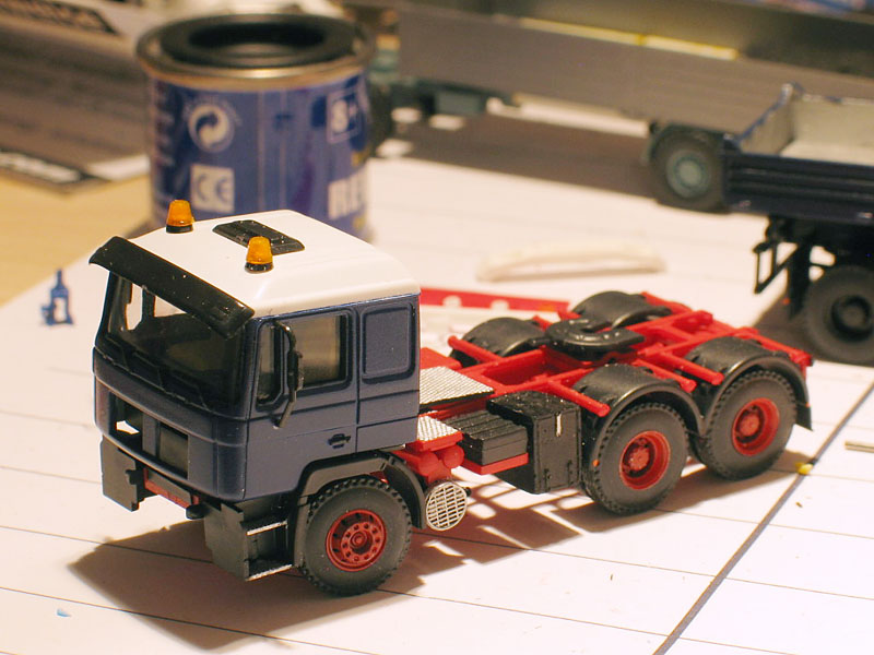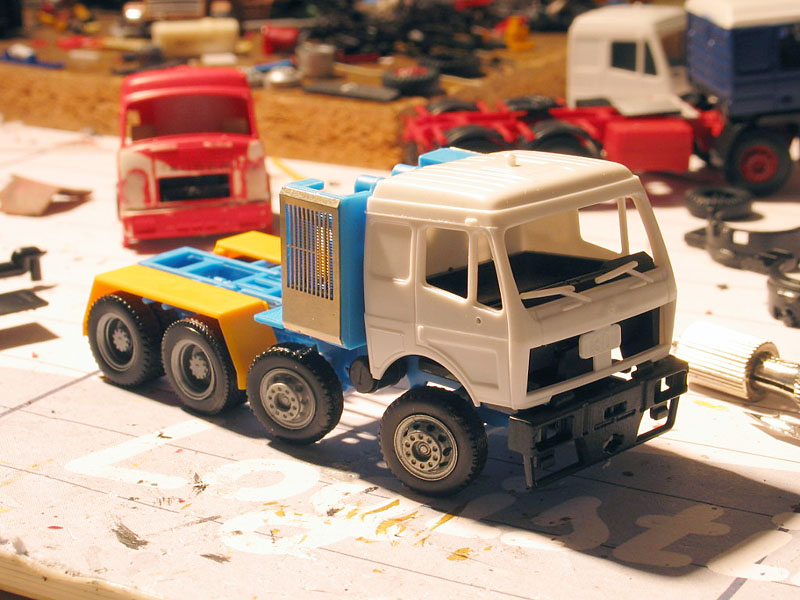 Bild 2: MB 3548 S Max Goll Basis kibri, Lenkung Eigenbau, Messigteile von A. Schoppe Hier ist noch einiges zu tun; gestern habe ich den Turm noch verspachtelt, evtl. kann ich nächste Woche lackieren.