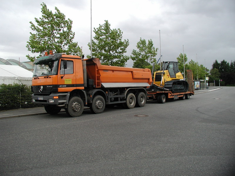 Bei uns hier in der Gegend fährt eine Baufirma einen F2000 Rundmuldenkipper und der hat einen 3achs Tieflader hintendran der entweder einen Straßenfertiger drauf hat oder einen Gehwegfertiger und eine Walze.