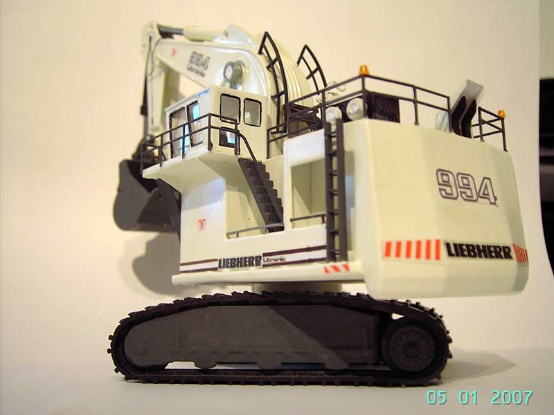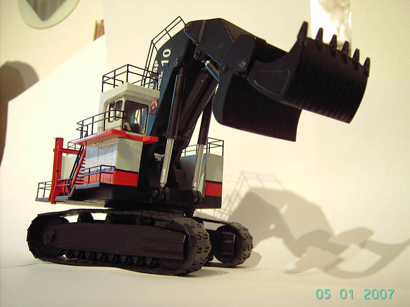Zuerst hier der Liebherr 994 B mit Tieflöffel, er bekommt noch nen geänderten Löffelstiel und die Hubzylinder werden noch durch schönere aus Messing getauscht. Der Bagger ist Komplett Eigenbau,ein grobes Grundgerüst lieferte der SIKU Raupenbagger.